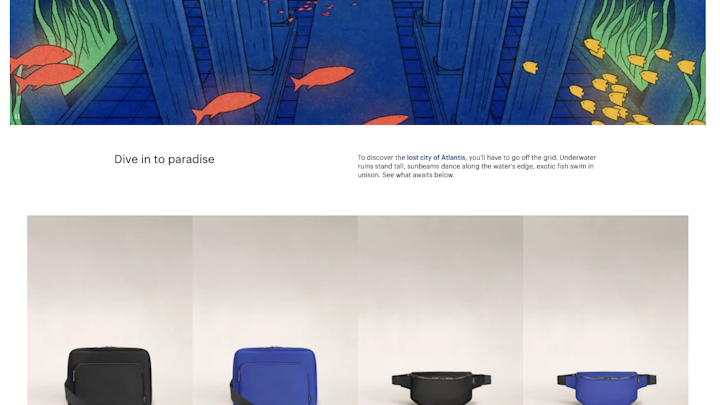 As part of a 360° campaign across paid social, email, ecomm, organic social, and retail, I creatively concepted and wrote copy inspiring Away customers to: Take a little trip. Reimagining what it means to travel, this campaign built immersive worlds themed around fictional places to prove that even a trip to your local aquarium can feel like a big adventure.